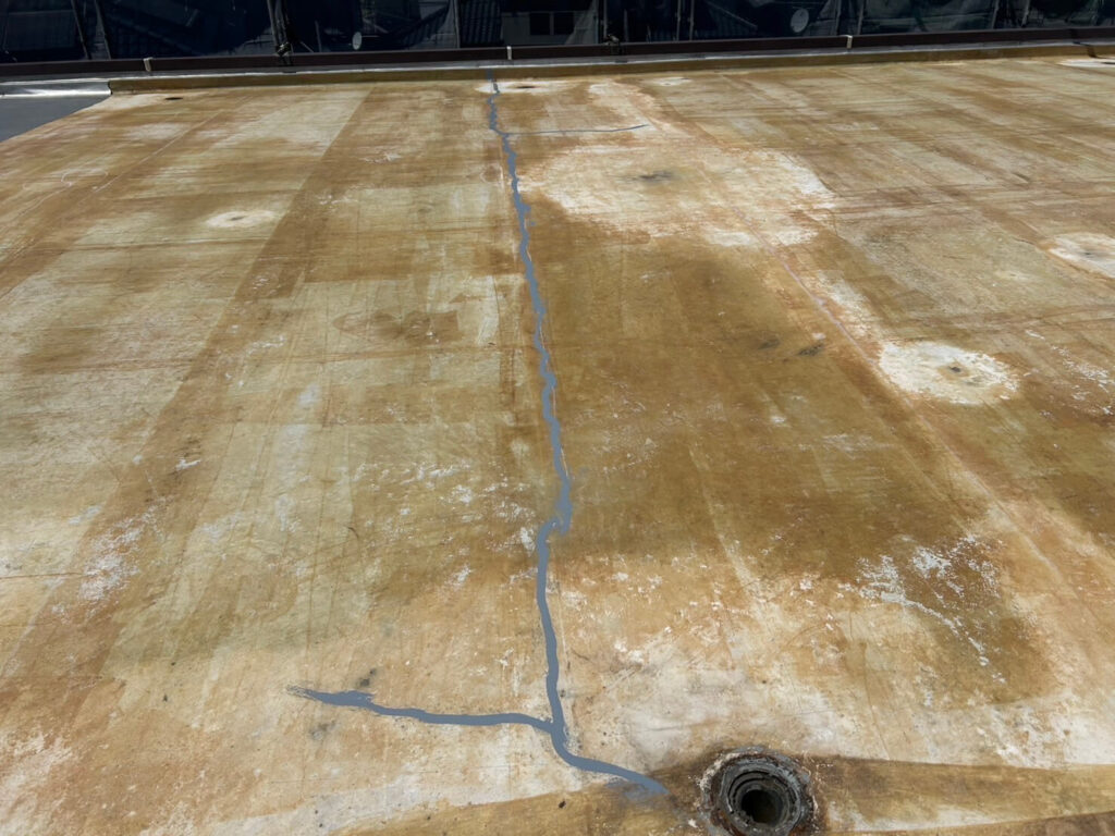普段は目につきにくい屋上ですが、劣化や補修跡の積み重ねが雨漏りの原因になることも。