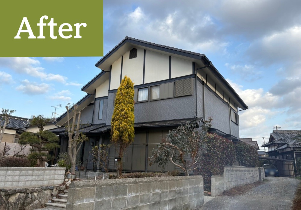 外壁塗装により建物の印象が美しく整い、防水性・耐候性が向上した仕上がりとなりました。